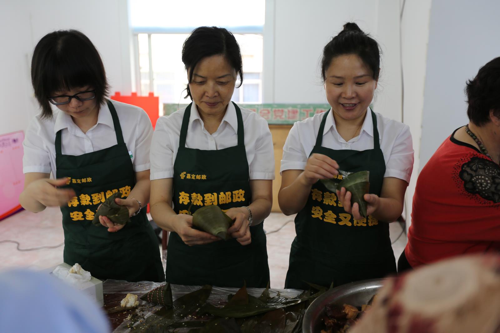 活动现场一片欢笑声。只见“高手”们手法娴熟,三角棕、斧头棕都不在话下,只见她们一会儿将粽叶卷成漏斗状后,用糯米充实压紧,再用细绳一绕、一捆,一个个可爱、鲜绿的“粽子”诞生了,她们一边包着,一边感受着中国传统文化的乐趣。经过2个多小时的努力,这些粽子将烧烤后送往居委的五保户、残疾人、独居老人和困难户家里,让他们在端午佳节里也品尝到美味喷香的粽子。